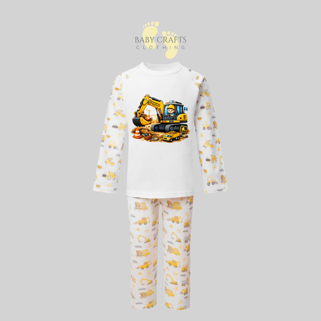 Personalised Children's Digger/JCB/Construction Pyjamas