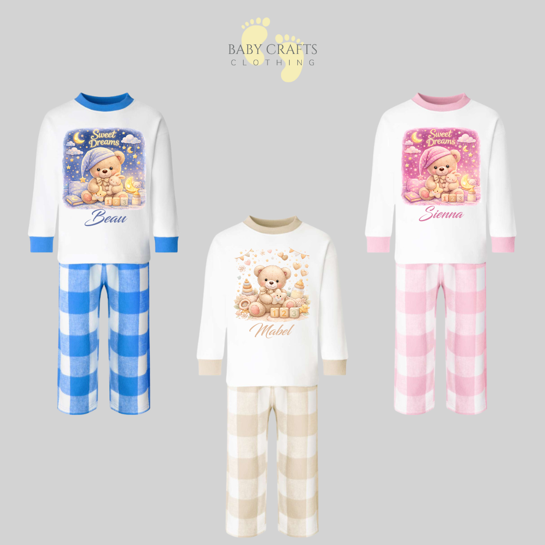 Personalised Children's Teddy Check Pyjamas