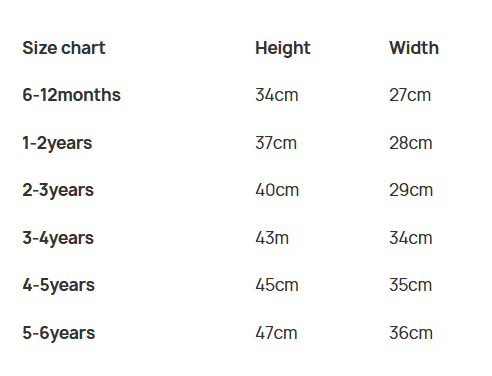 Available in sizes - 6-12 Months, 1-2 Years, 2-3 Years, 3-4 Years, 4-5 Years, 5-6 Years.